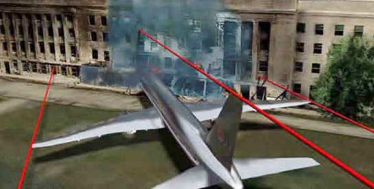 Sporne "činjenice" - Mesto pada "leta 93", nigde traga delovima aviona. / Ugao pod kojim je avion morao da leti da bi udario u Pentagon i da bi načinio štetu koja je prikazana. / Prilikom rušenja blizankinja uočeno je nešto što liči na male eksplozije.